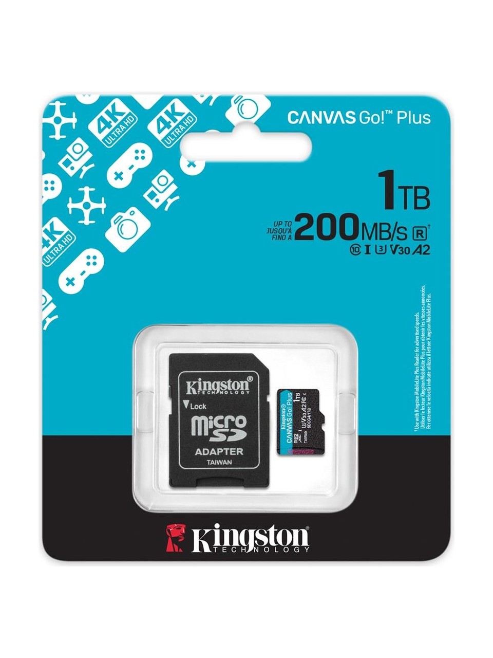 Kingston SDCG4/1TB 1 TB Canvas Go Plus GEn4 200Mb/s A2 U3 V30 microSD Kart